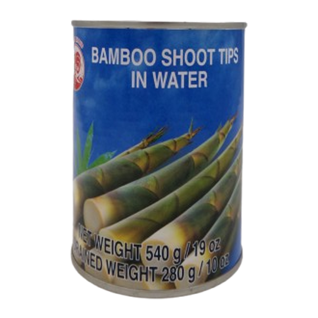 BAMBOO SHOOT TIPS IN WATER, NET WEIGHT: 540 g – DRAINED WEIGHT: 280 g