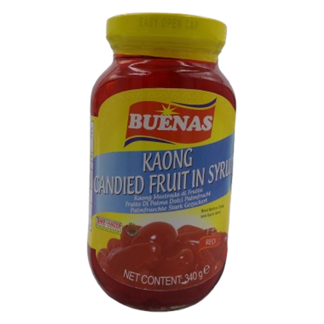 Buenas Kaong is a red, candied sugar palm fruit preserved in syrup, known for its vibrant color and chewy texture, making it a popular ingredient in Filipino desserts like halo-halo and fruit salads. Ready to eat and best served chilled, the fruit is a delicacy from the native sugar palm tree and adds sweetness, color, and a unique texture to various dishes. typically contains Sugar Palm Fruit, Water, Cane Sugar, an Acidity Regulator (like Citric Acid/E330), Flavouring, and Colours (such as E129, E133, or E102) depending on the variant. Some versions may also include a preservative like Sodium Metabisulphite, which contains sulfites.