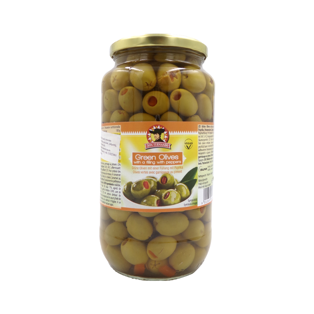 DON FERNADO GREEN OLIVES WITH PEPPERS, 920GR