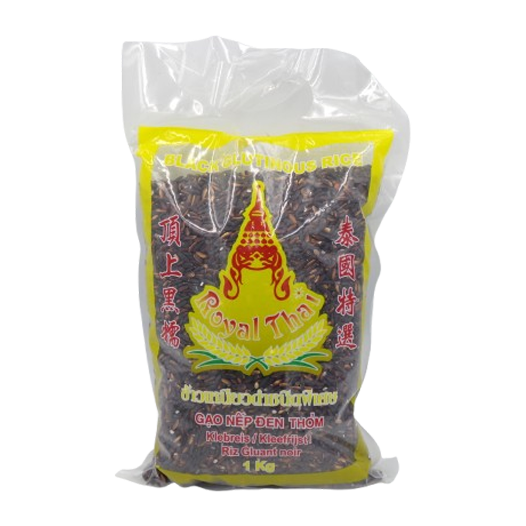 ROYAL THAI Black Glutinous Rice 1KG is a 1kg package of authentic Thai black rice, a sticky, dark-colored, glutinous rice known for its nutty, earthy flavor and creamy texture when cooked. It is a healthy, high-fiber ingredient rich in antioxidants and minerals, ideal for both sweet and savory dishes, including traditional Thai desserts like mango sticky rice, and is also suitable for stir-fries, curries, and salads.Nutritional Information per 100gm (unless otherwise stated):